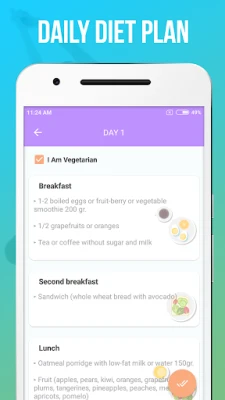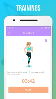- Various workouts for 30 days - Animated exercise demonstration - Diet plan for 30 days with a daily schedule and various products - Weight loss progress - Statistics on the calories burned - Gradually increases exercise intensity - 3 difficulty levels - No equipment needed