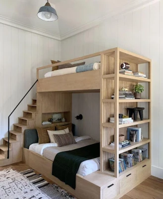The cabinets can contain other drawers and shelves in addition to the space for the mattress. Some beds are already built-in - on shelves, such as those that can be lifted to reveal a drawer or other shelves, as well as a bedside table.