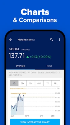 - Investments made easy with stock quotes, interactive charts and customizable time frames.