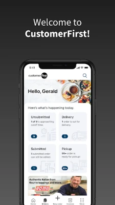 CustomerFirst, aka "Customer First", is a cutting-edge ordering platform, from Performance Foodservice and Vistar, featuring a streamlined ordering experience specifically designed for your mobile phone, an at-a-glance dashboard highlighting what you need to know, and intelligent search to find the right products at a moment’s notice.