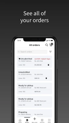 Best-in-class features: • Place orders from your phone • Access your orders across locations • View open orders, deliveries, and order history • View invoices, statements, and POD docs • Search for new items • Order using par levels
