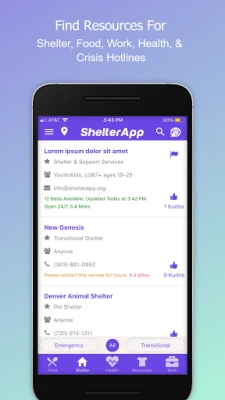 Shelter App is an AI Powered Chatbot that connects at-risk youth to services like Youth Drop-in Centers, Homeless & Run Away Youth Shelters, LGBT Advocacy and Support Groups, After School Programs, Crisis or Hot lines, Food Banks, Soup Kitchens, Food Pantries, Transitional Housing, Domestic Violence Shelters, Pet Shelters, Rent/Utility Assistance, Affordable Housing Options, Free or Low-cost Medical & Dental Clinics, Mental Health Centers, HIV/STI Testing Centers, Syringe Exchange Programs, Clothing Resources, Free Legal clinics, Hygiene Services, Showers, Restrooms, Homeless and Low-income Family Resources, Education & Employment Assistance Services, Job Training Programs, Life Skills Training, Mentorship & many more resources for Homeless and People in Need.