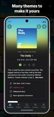 - Android Auto: browse your podcasts and filters to find an interesting episode, then control playback. All without ever touching your phone.