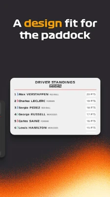 homescreen widgets to follow Formula 1 stats. With Racify you can: